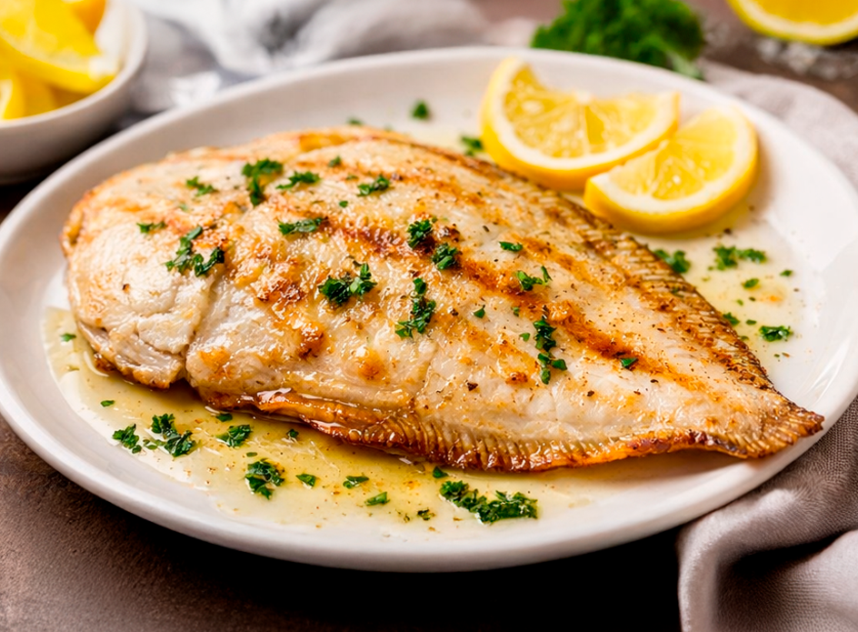 Presenta una piel lisa, de color marrón grisáceo en la cara superior y blanca en la inferior. Su tamaño suele ser medio, lo que lo convierte en una opción muy manejable tanto para pescaderías como para el consumo doméstico. Es un pescado muy valorado por su textura tierna, fácil digestión y ausencia casi total de espinas.